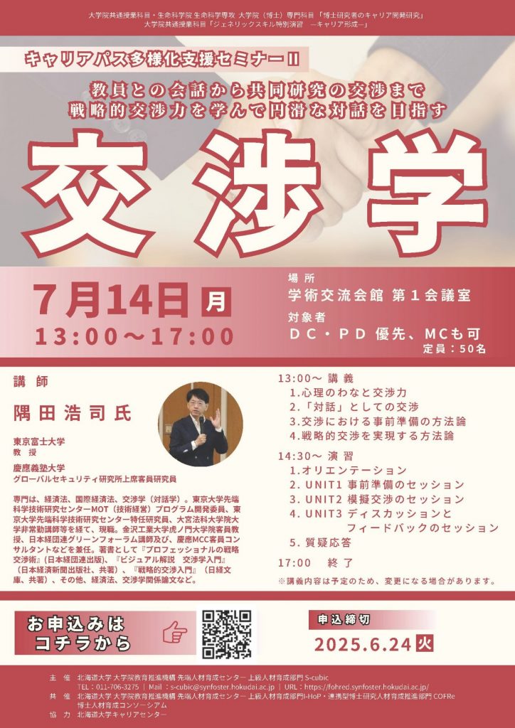 2025年3月24日(月)12:00までにPhDリクルート室までご連絡ください。 |
