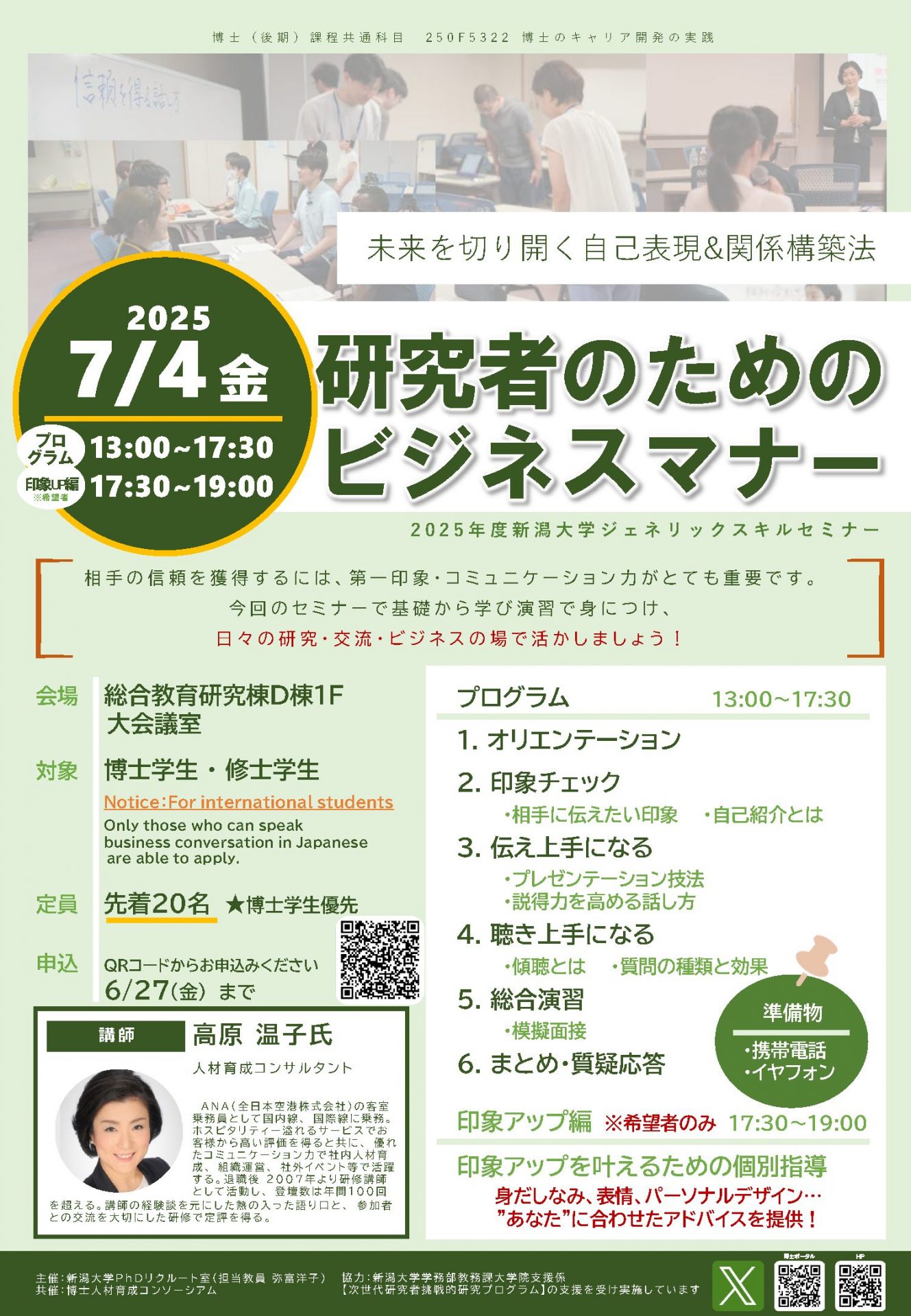【お茶大】「【オンデマンド配信】博士のためのキャリアセミナー~伝わりやすい研究プレゼンのためのロジック・デザインの基礎~」