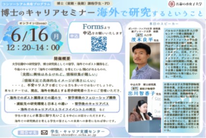 【お茶大】「【オンデマンド配信】女性博士のOG講演・懇談会~~私らしい”研究”のその先」