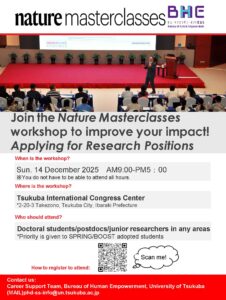 ホームイベント【Tsukuba Univ.】SpringerNature-Workshop:Nature Masterclasses Expert Trainer-led Applying for Research PositionsチラシNature Masterclasses poster1214