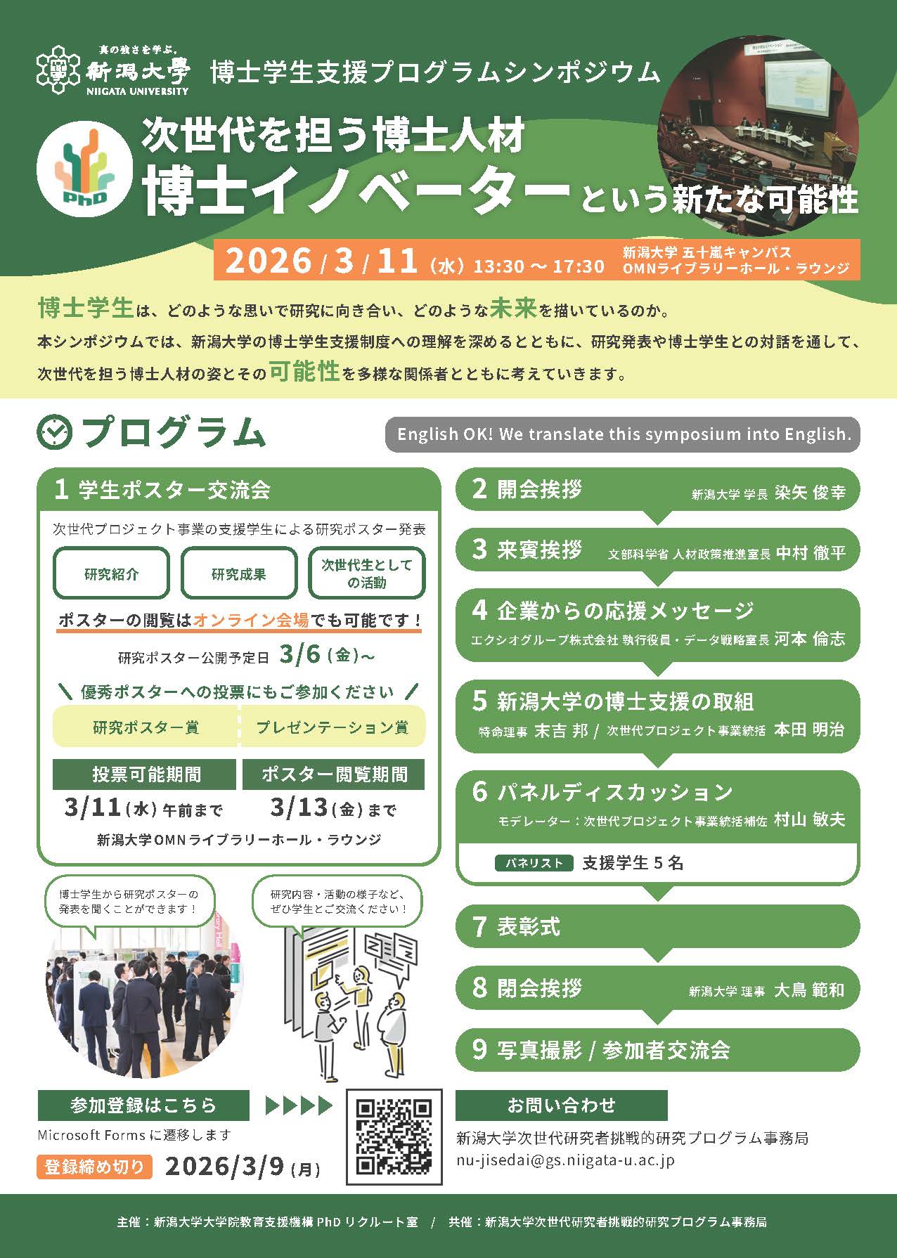 ホームイベント博士学生支援プログラムシンポジウム(次世代プロジェクト事業報告会) 次世代を担う博士人材 博士イノベーターという新たな可能性令和7年度 新潟大学博士課程支援プログラムシンポジウム(写真)